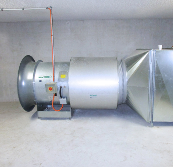 The installation required precise engineering to address the facility's unique two-layer configuration. This configuration ensures effective polluted air extraction from both parking levels while maintaining critical pressure differentials.