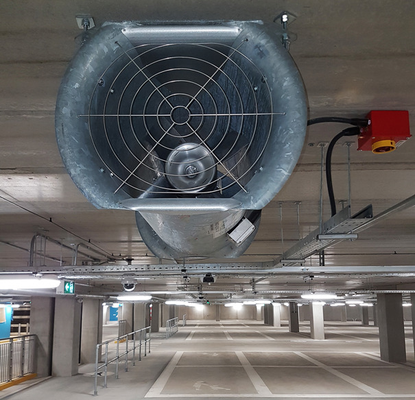 For the car park ventilation system, the team delivered 40 jet fans and 2 large extract shafts. The jet fans include reliable AUT 400 basic jet fans and compact CGF 500 slimline jet fans, selected for areas with limited height to simplify installation.